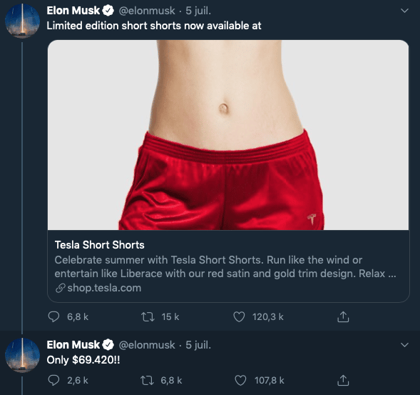 Pour cela Elon Musk a lancé, le dimanche 5 juillet dernier, un tout nouveau produit, le short Tesla en édition limitée.